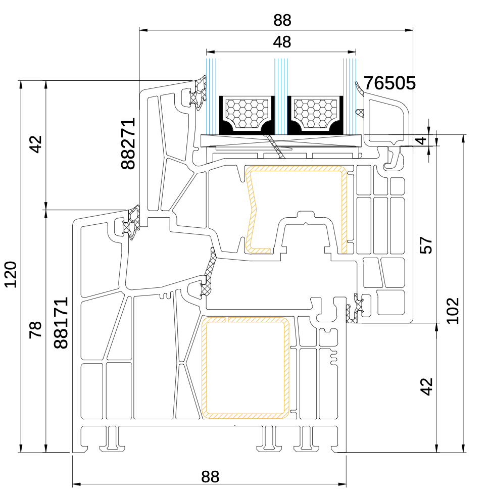 - Ansichtsbreite Rahmen/Flügel: 120 mm