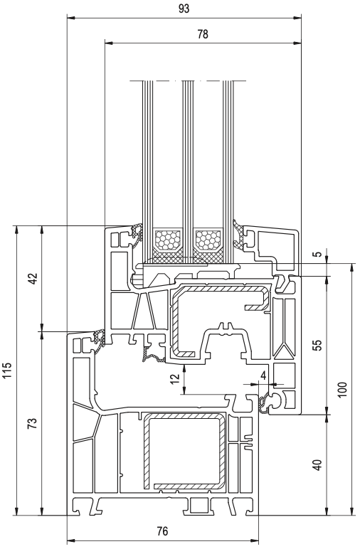 - Ansichtsbreite Rahmen/Flügel: 115 mm