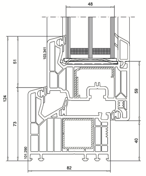 - Ansichtsbreite Rahmen/Flügel: 124 mm